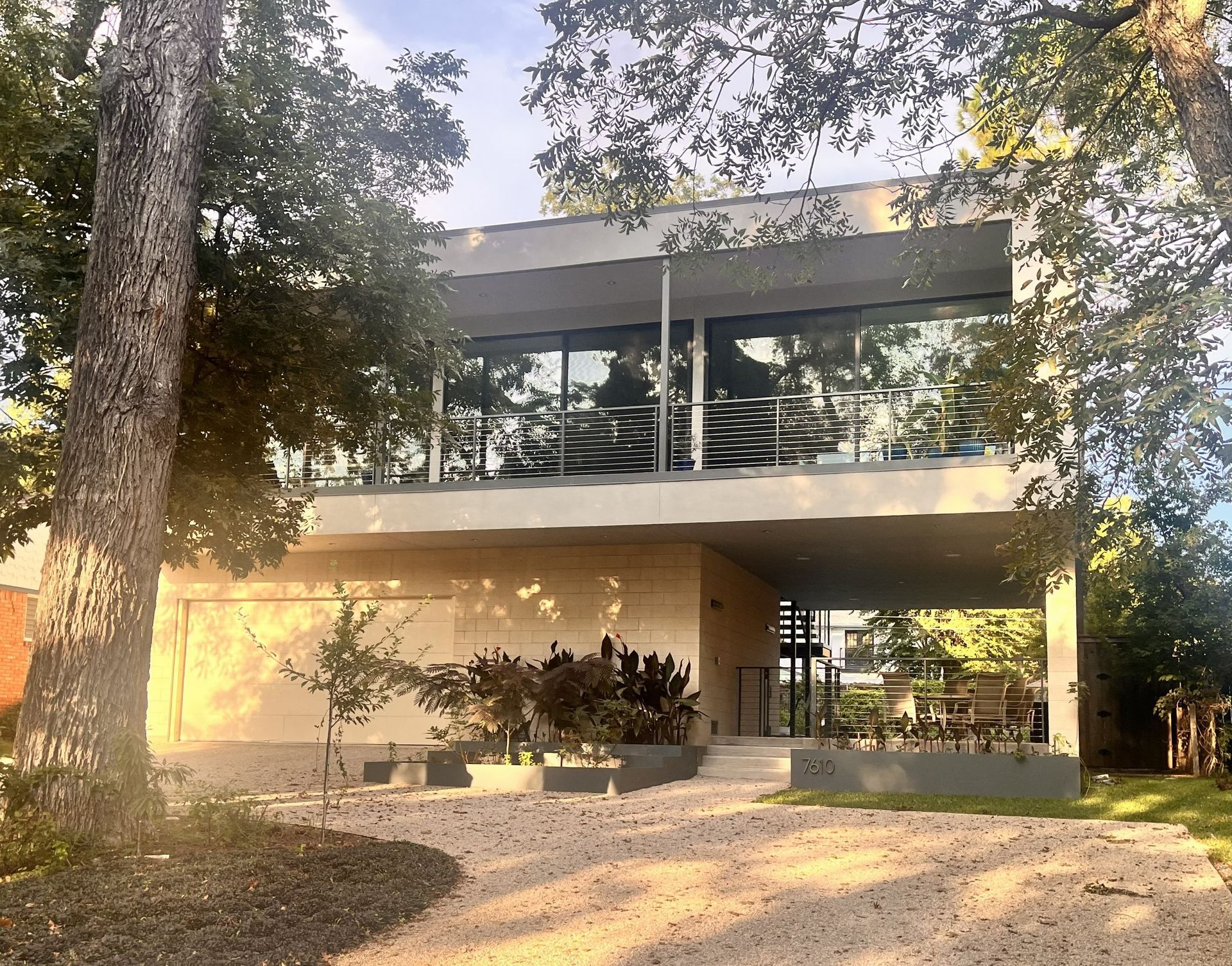 a 5,400 square foot house in the flood plain, designed with wet floodproofing techniques to allow water to come in under the ramped garage